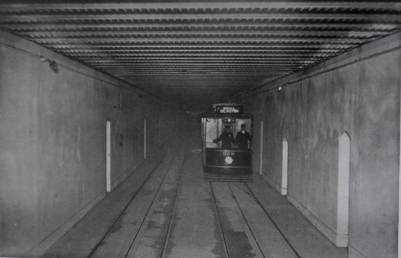 And beneath Aldwych, an electric tram in Kingsway Tunnel, London